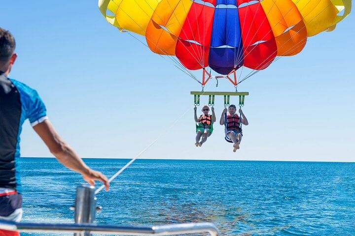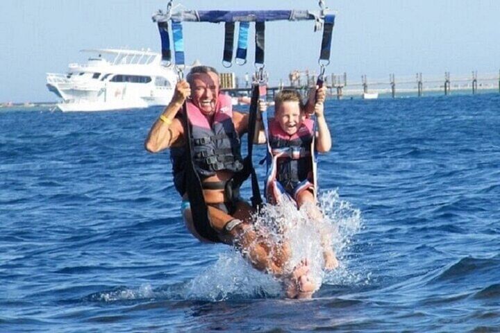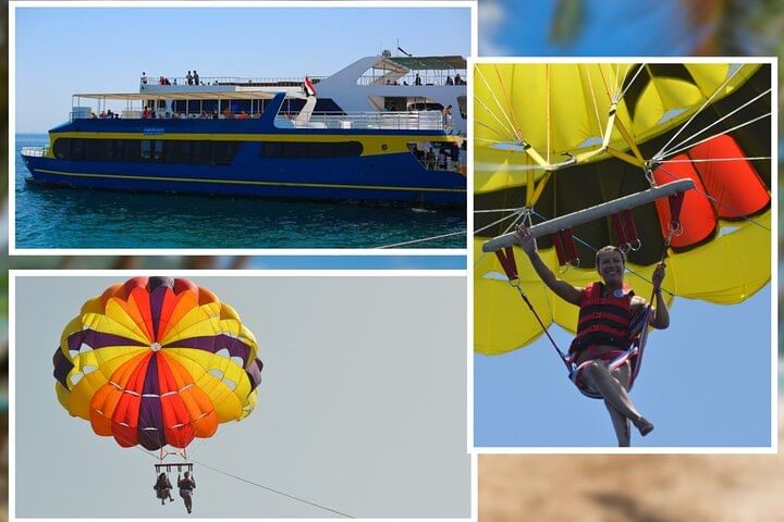 Experience the ultimate adventure in Hurghada with a thrilling mix of activities. Start your day aboard a semi-submarine, where you can view vibrant marine life and coral reefs through panoramic windows without getting wet. Next, enjoy an exhilarating snorkeling session in the clear blue waters, swimming among colorful fish and stunning underwater landscapes. Finally, take to the skies with an exciting parasailing ride, soaring high above the coastline and azure waters. This diverse itinerary guarantees a memorable day of exploration and excitement in Hurghada.