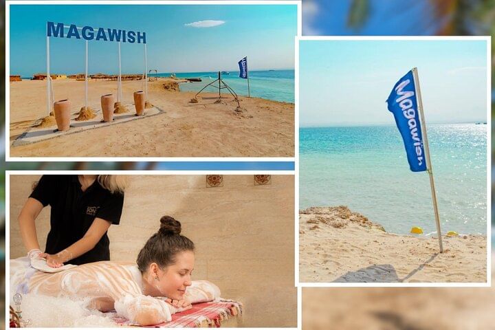 Treat yourself to a day of adventure and relaxation with our Magawish Island trip from Hurghada. Start with an exhilarating snorkeling experience in the island's crystal-clear waters, where you’ll explore vibrant coral reefs and diverse marine life. After your aquatic adventure, unwind with a traditional Turkish bath, featuring a soothing steam session, invigorating scrub, and a revitalizing massage to rejuvenate your senses. Following your Turkish bath, enjoy a delicious lunch on the island, offering a variety of fresh and flavorful dishes in a stunning natural setting. This perfect combination of snorkeling, pampering, and dining provides a well-rounded escape, blending excitement with relaxation for a truly memorable day.