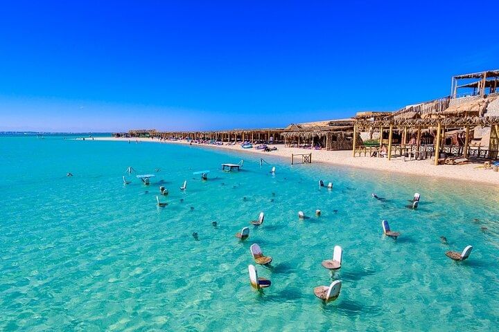 Set sail for a day of sun, sea, and snorkeling with this top-rated Red Sea adventure to Orange Island. Departing from Hurghada, cruise across the sparkling turquoise waters and bask in the region’s famous year-round sunshine as you make your way to one of Egypt’s most stunning island getaways.