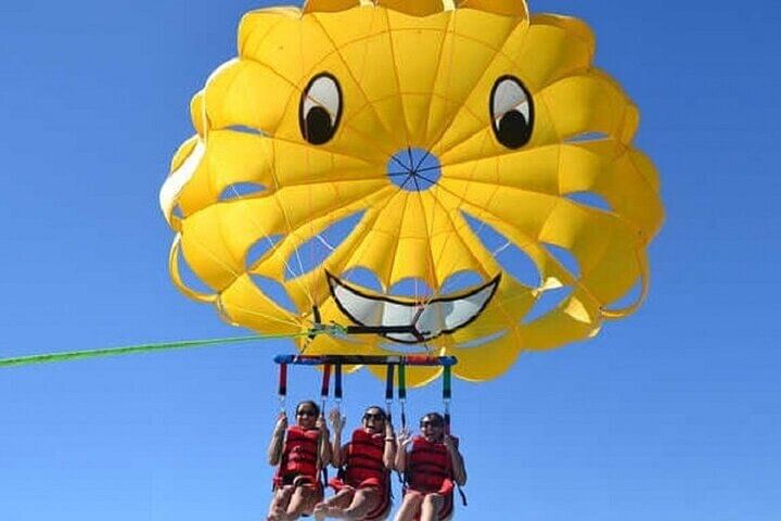Dive into an exhilarating day with our "Fantastic Orange Island Adventure" in Hurghada. This action-packed tour takes you to the picturesque Orange Island, where you'll experience a thrilling 7-minute parasailing session, offering stunning aerial views of