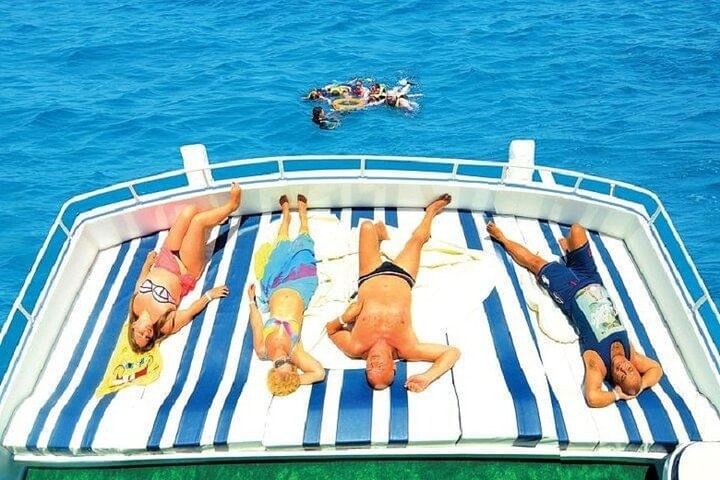 Dive into two guided snorkeling sessions at vibrant coral reefs teeming with marine life, savor a delicious buffet lunch on board, and feel the thrill of water sports and parasailing, offering stunning aerial views of the Red Sea.