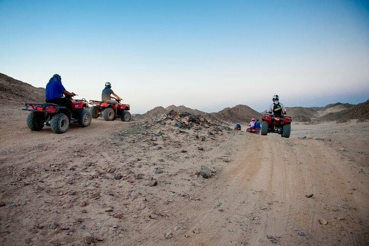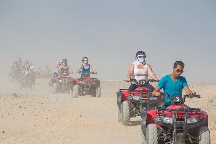 Immerse yourself in the excitement of a 3-hour safari in Hurghada with our quad bike and camel ride adventure. Begin with the thrill of riding across desert dunes on a powerful quad bike