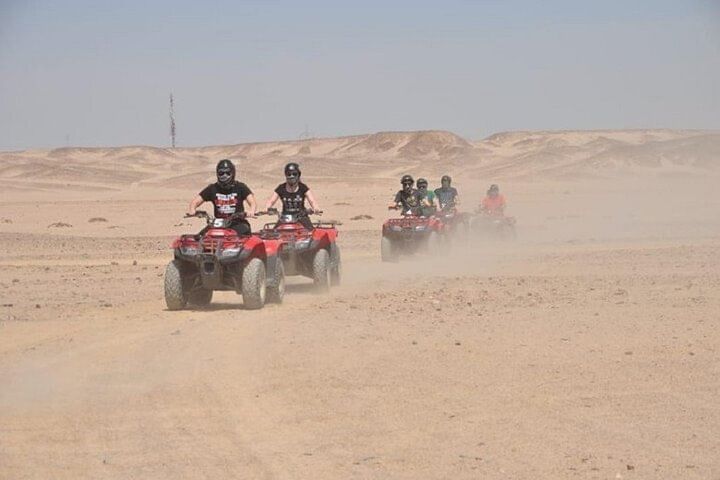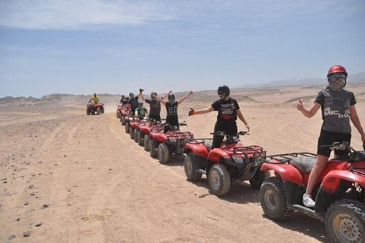 Join us on a thrilling 3-hour adventure in Hurghada, combining the excitement of a quad bike safari, the wonder of exploring fascinating caves, and the traditional charm of a camel ride